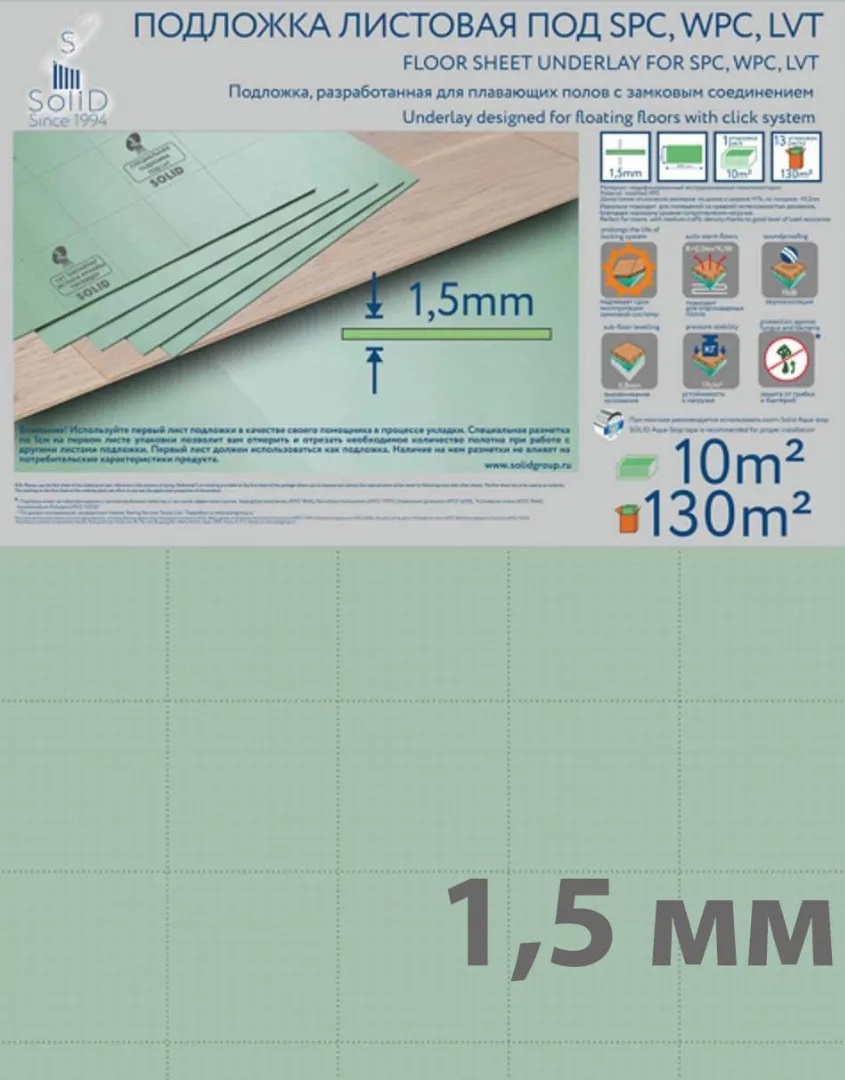 —Подложка Солид листовая зеленая LVT 1,5 мм (10м2)